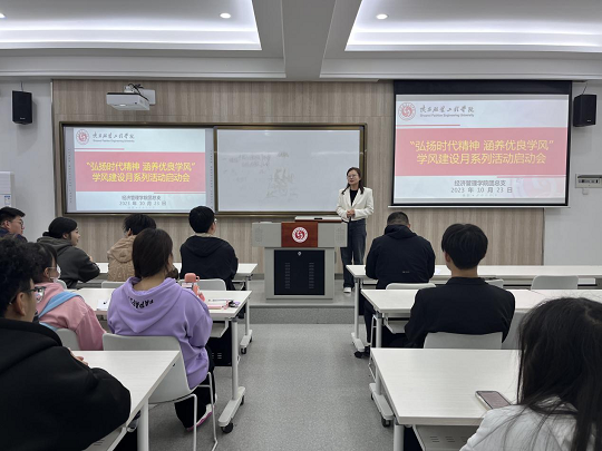 为落实立德树人根本任务,持续推进诚信教育、学风建设等专项工作,营造求真务实的学习氛围和风清气正的育人环境。10月23日下午,经济与管理学院在B209教室组织召开“弘扬时代精神,涵养优良学风”学风建设月系列活动推进会。PA视讯集团团总支书记郭亭亭老师,PA视讯集团团总支副书记高玉杰老师及各班团支书参加本次会议。