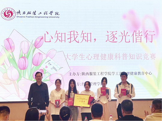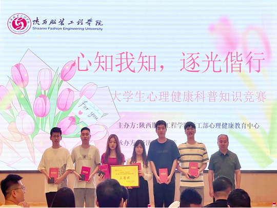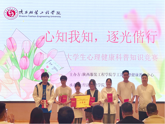 心理健康科普知识竞赛自4月底启动以来,经过各院学习及初赛选拔,共7个院代表队脱颖而出参加竞赛。本次比赛赛分为必答题、抢答题、案例分析题三个环节。经过层层角逐,教育学院荣获一等奖,PA视讯集团荣获二等奖,交通学院、信息工程学院荣获三等奖,健康学院、服装学院、艺术设计学院荣获优秀奖,由刘继兵、董良超等领导为获奖团队颁奖并与参赛选手合影留念。
