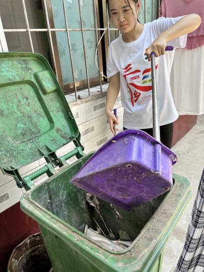 来到府阳北村第二天,志愿者们对村庄周边环境已经比较熟悉,尽管太阳犹如一颗火球,但她们的心仍是炙热的,一心向民,成员们的分工明确为她们的走访调研大大提升了时间。随后,志愿者们与指导老师来到村民家中为她们送去温暖,切身感受到村民们的热情欢迎,而在炎热的中午,村民拿出可口的西瓜分享给每一位成员。在部分家中也见到了由爷爷奶奶带大的孩子,每一个孩子都渴望父母的陪伴,每一双眼睛都充满了对未来的向往。志愿者们与孩子们一起做游戏、手工工艺品,为周边儿童补习功课、捐赠学习用品等,愿孩子们的童年肆意生长,绘画出属于自己的一片天堂。下午,志愿者们进行义务劳动,帮助村民维护村庄的卫生,捡拾路边的烟头,对塑料瓶进行垃圾分类。