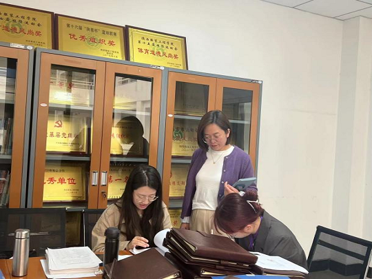 时晓楠对检查工作进行分工。检查组成员进行认真、细致的检查。各项资料检查结束后,逐项给予反馈。时晓楠对我院工作表示肯定,第一,领导重视,工作开展扎实。第二,根据安排,对标对表。第三,汇报内容丰富,有针对性。第四建立了评估整改台账。同时,也提出了三点建议。第一课程思政三进原则,进课标、进教案、进课堂。第二继续加强青年教师科研能力的提升。第三不断优化期末考核方式。