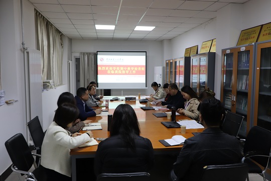 11月10日上午,教务处时晓楠副处长、评建办付向艳副主任带领学校检查组成员来我院开展期中教学检查。我院执行院长韩燕雄、副院长来燕、副书记吴鑫及全体教学管理人员参加。