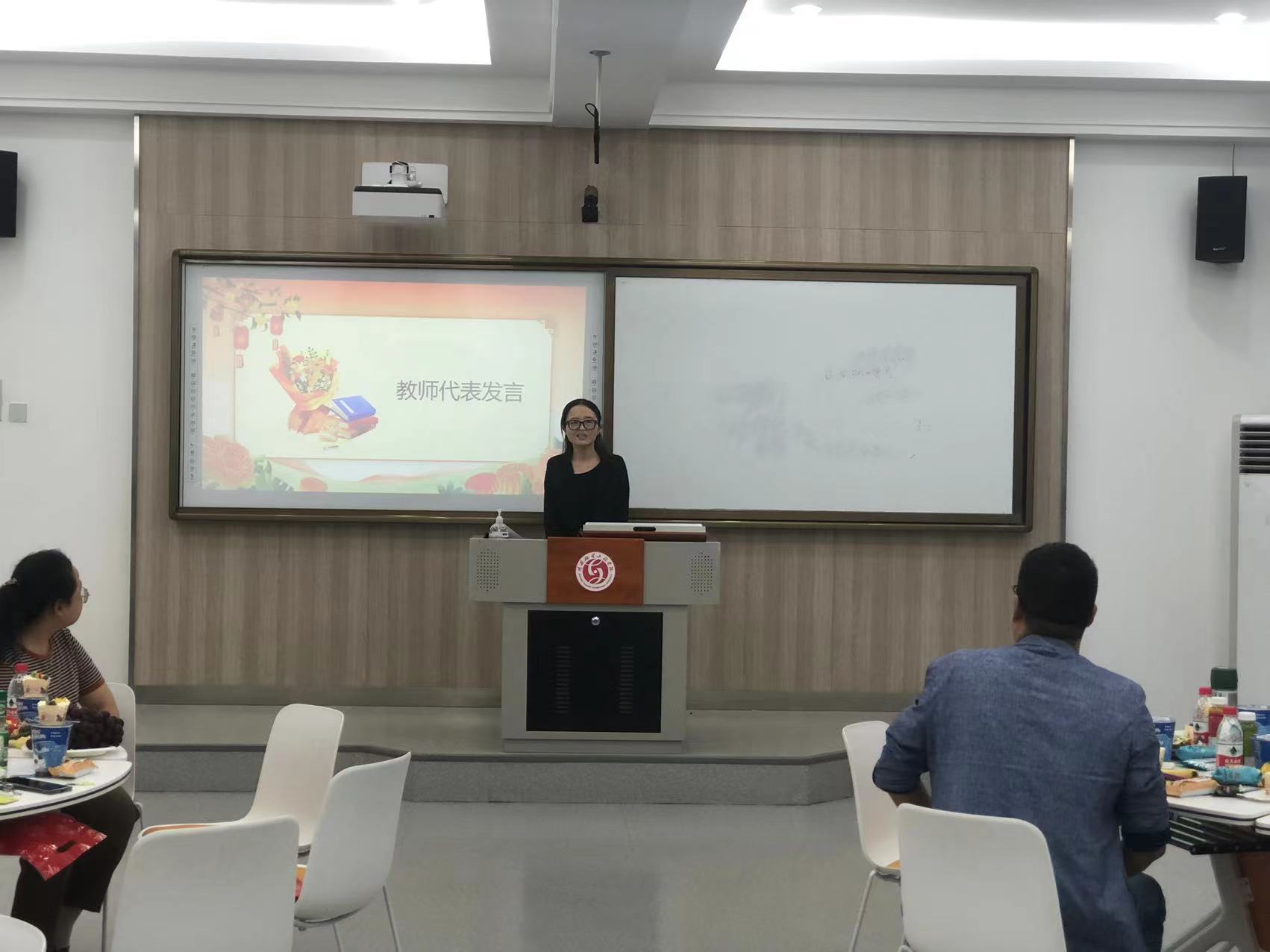 活动第三项,财务会计系教师宁娜、物流管理系教师宋莎、辅导员王礼芳、王雷分别进行了发言,感谢学校的培育之恩,诉说对教育事业的无限热爱,表示要对陕服的发展做出积极的贡献。