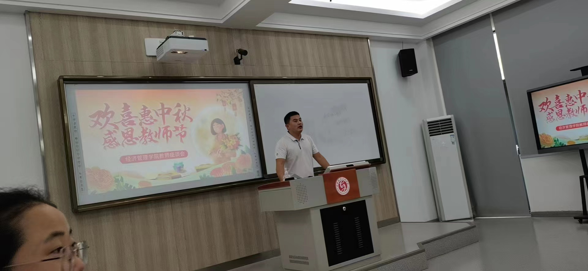 执行院长韩燕雄对黄校长一行莅临我院庆祝教师节活动表示了欢迎,韩院长指出,教师是科学知识的传播者,是精神文明的建设者,是人类灵魂的工程师,希望我院教师继续发扬优良传统,以自己高尚的职业道德和良好的学术水平教育学生。韩院长同时强调到,在我校评建工作持续推进,全校上下正在积蓄力量,朝着建设新时代无边界幸福大学的奋斗目标迈进,经管学院将与学校同向同行,不断加强内涵建设,推动教育教学工作高质量运行。