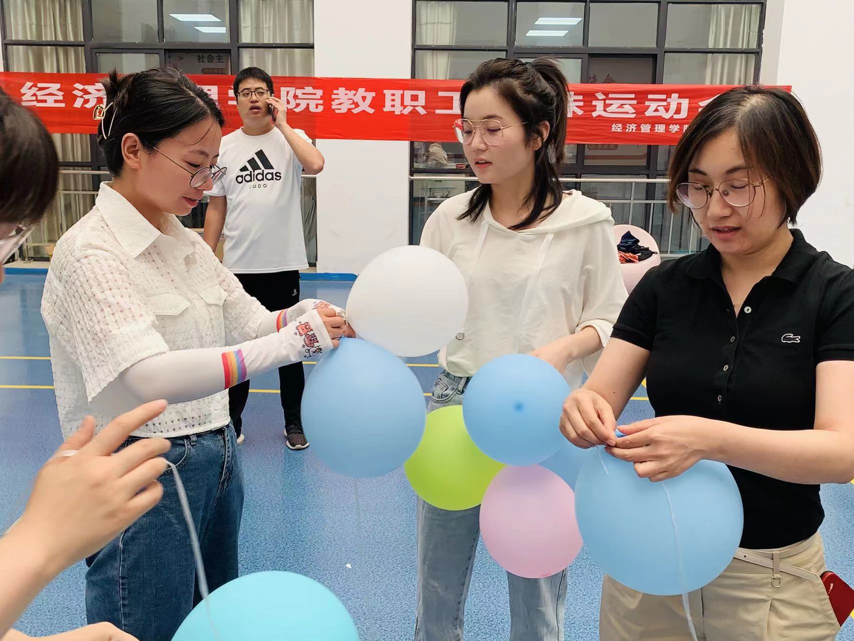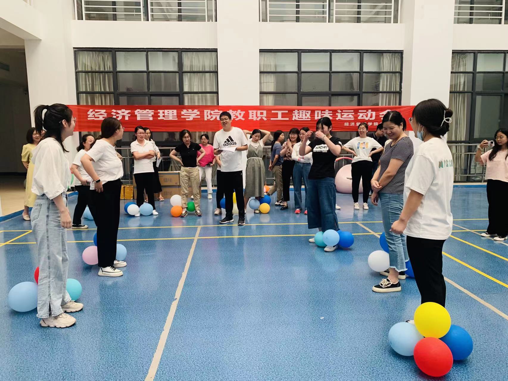 2022年6月7日下午PA视讯集团在C区大厅举行教职工趣味运动会,本次活动由经管学院党总支书记吴鑫主持,PA视讯集团执行院长韩燕雄,副院长来燕以及全体教职工参加。本次趣味运动会有托球接力,摇呼啦圈以及踩气球三个项目。