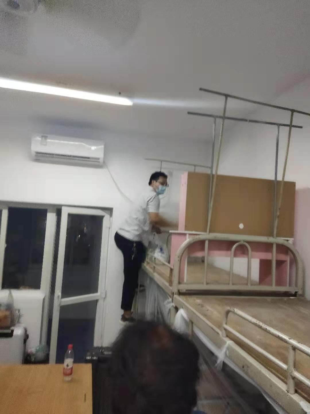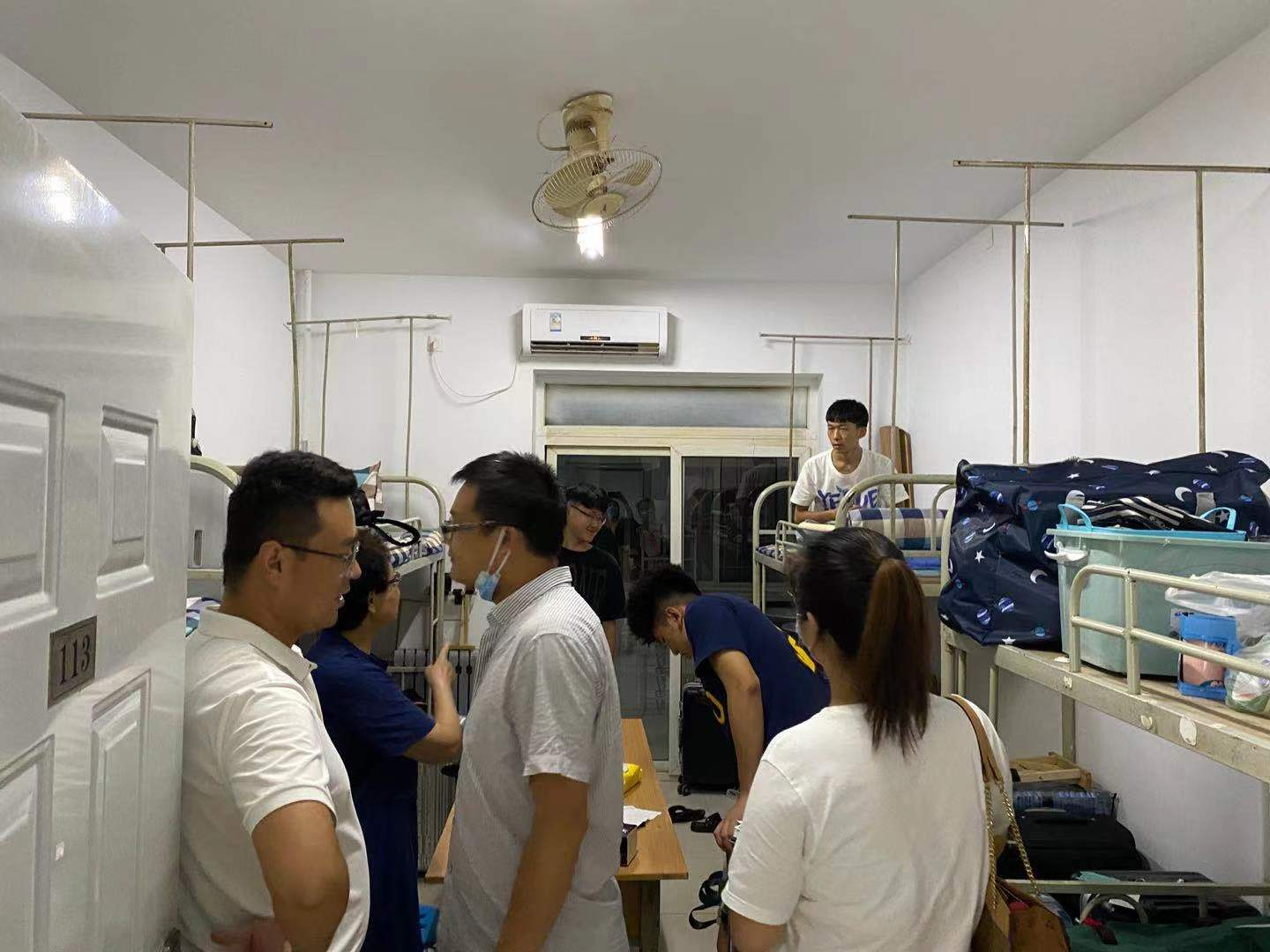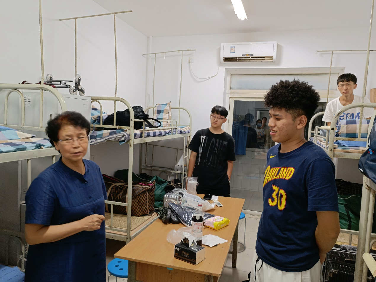 在一群亲切老师的带领下学生们纷纷表示自己的大学生活将会生活的有声有色,王雷老师去新生宿舍走访时,为怕学生爬高危险,亲自去每个宿舍爬上上铺给新同学们插空调插座。