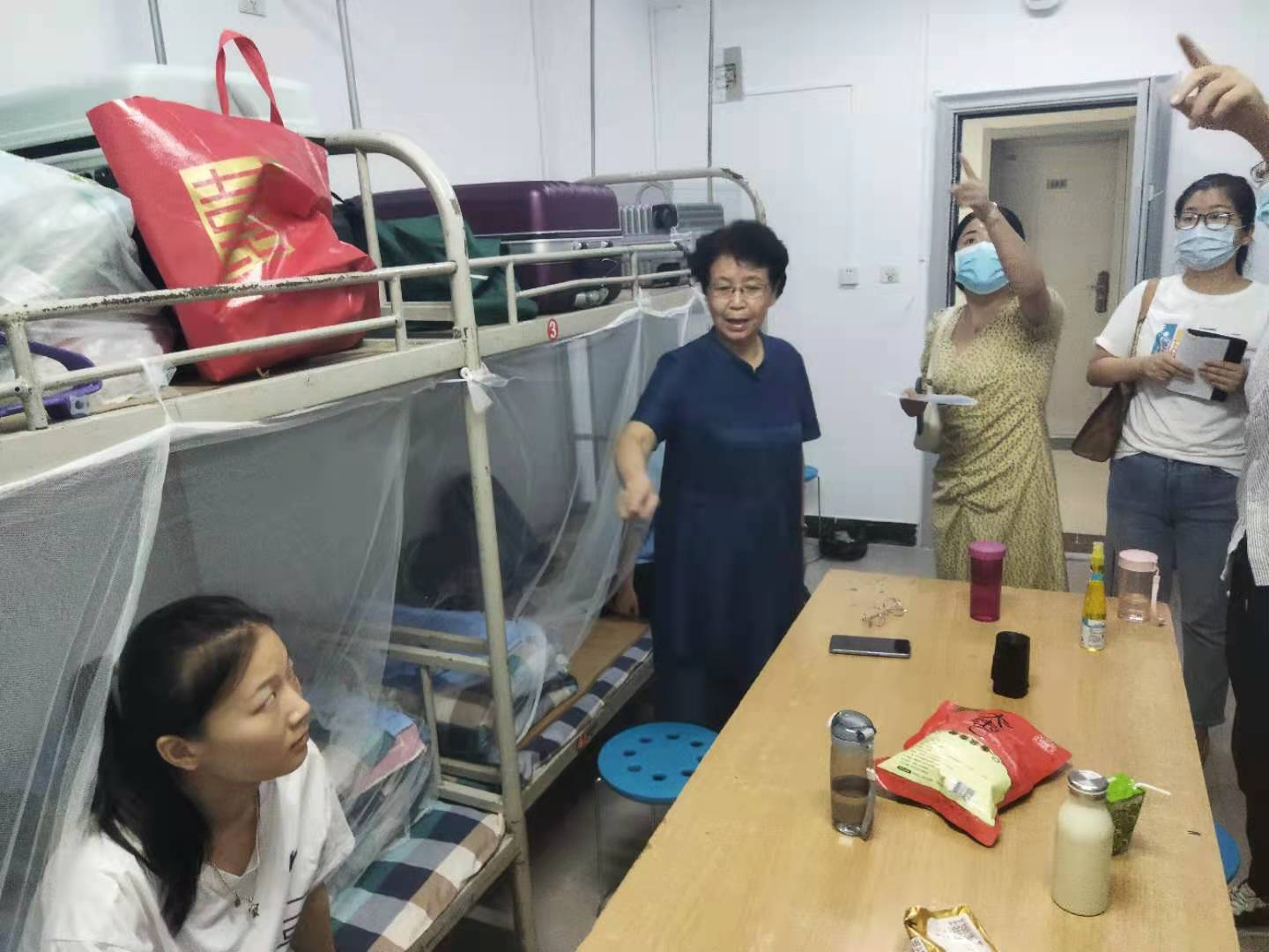 在陈力军老师带领下先是来到了女生公寓,老师们询问了学生返校情况和生活等方面,并要求学生们新学期做好新的规划,学生们对老师们的到来倍感兴奋,纷纷向老师诉说自己的假期生活气氛其乐融融。