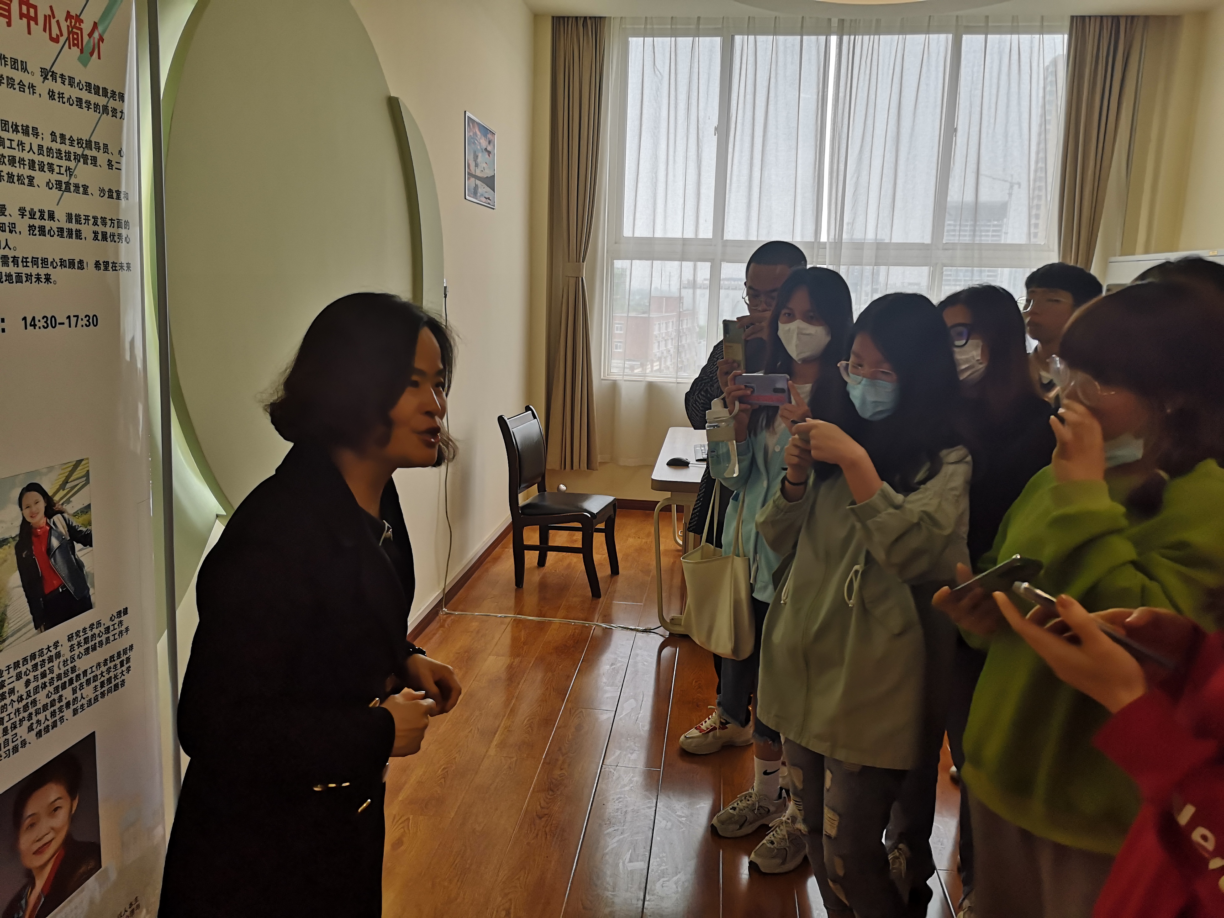 此次活动充分响应了我校第三届“阳光护航”心理育人宣传季实践活动,通过参观,让学生进一步了解到学校心理咨询中心存在的价值和意义,培养学生积极健康的心态,鼓励学生勇敢的面对自己的心理,生理健康,以此帮助到更多心理有困惑有困难的学生,维护校园和谐稳定,促进学生健康成长成才。