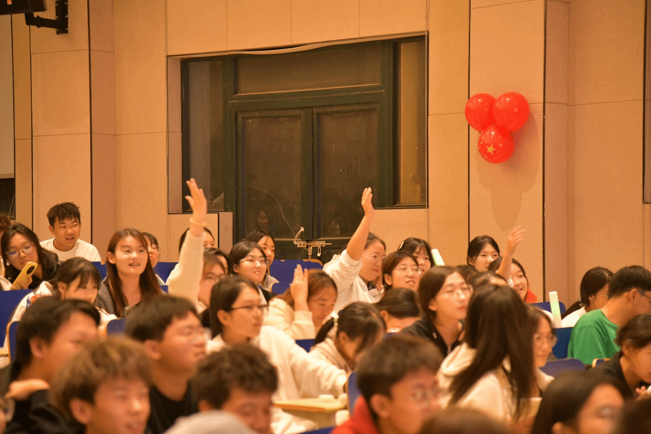 在演唱过程中,同学们不仅展现了非凡的默契和精湛的演唱技巧,更将每一首歌曲的深刻内涵和情感表达得淋漓尽致。现场观众被深深感染,掌声、欢呼声此起彼伏,共同营造了浓厚的爱国氛围。此次活动还设置了中场互动环节,在互动环节中,现场观众们热情满满,积极回答问题,与主持人互动,更是将活动推向了高潮。