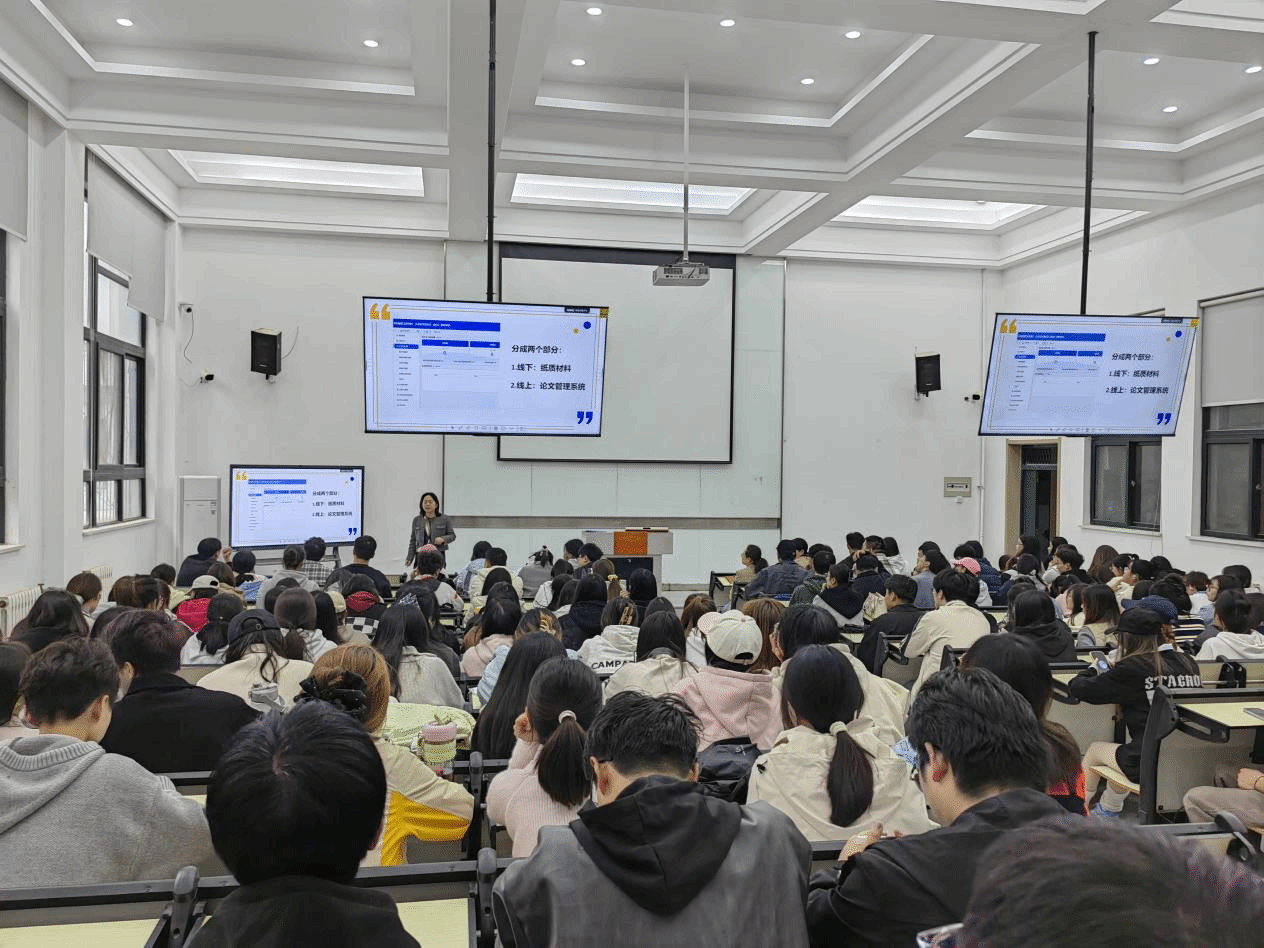 来燕强调,毕业论文是本科学习成果的核心检验,要求学生严守学术规范、合理规划进度。肖朝英详解格式标准、查重要求及时间节点,梳理往届常见问题。各专业负责人结合学科特色给出选题建议,现场解答学生疑问。
