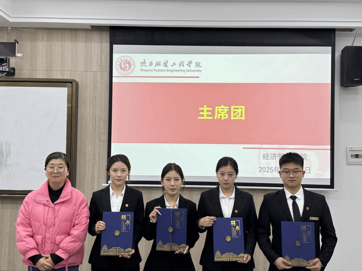 接着,进入聘书颁发环节,主持人依次呼叫新一届各部门干部登台,各位老师依次为新任干部颁发聘书并合影留念。一张张聘书不仅是对新任干部能力的认可,更承载着学院对学生会发展的殷切期望,接过聘书的学生干部们神情坚定,展现出履职尽责的决心。承诺将以“服务同学、奉献校园”为宗旨,秉持责任担当,主动履职尽责,不断提升工作能力,创新活动形式,携手全体成员同心同德、务实奋进,为学院发展与同学成长贡献青春力量。