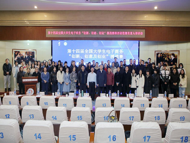 2023年11月29下午2点第十四届全国大学生电子商务“创新、创意及创业”挑战赛陕西省校赛负责人培训会在陕西国际商贸学院召开。我院市场营销系焦鹏飞老师与郭春香老师参加培训会。