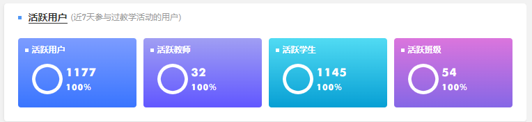 第二阶段新开课教师利用线上和微信群系统掌握了“雨课堂”等线上教学平台的操作技巧,顺利开展了线上教学工作。通过调取后台数据可知,所有课程应开尽开,活跃教师、活跃学生均为100%。