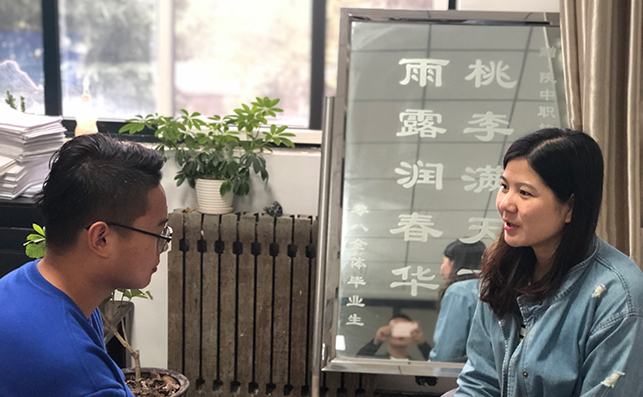 10月4日上午,记者杨润泽在B212办公室采访了PA视讯集团市场营销系校级优秀教师张依玲老师,窗外细雨蒙蒙,实验室内让人感到暖心融融。