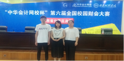 由中国高等教育学会高等经教育分会和正保远程教育举办,西安财经学院承办的“中华会计网校杯”第六届全国校园财会大赛陕西赛区决赛于6月23、24日在西安财经学院举行,参赛选手来自陕西科技大学、西安财经学院等陕西18所高校。我校会计学专业三名学生孙颖(会计学130304班)、张朝朝(会计学130708班)、李明玉(会计学130910班)表现优异,经过激烈角逐,我校代表队荣获“中华会计网校杯”第六届全国校园财会大赛陕西赛区三等奖,张秀华、梅璐璐两位教师获“优秀指导教师”。