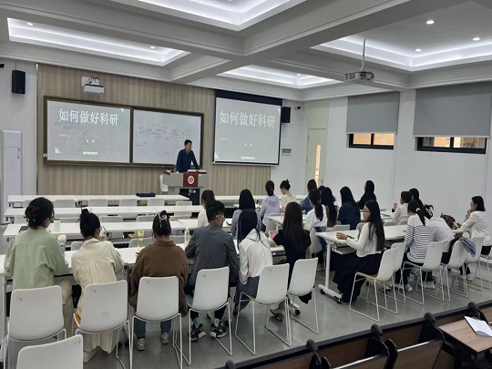 最后,杨勇教授关于科研选题进行了深入讲解。他强调,第一,科研选题要紧跟国家时事政策,为切实解决我国社会实践的紧迫需要提供思路;第二,要时刻关注国内外学科发展的趋势和研究领域的最新成果,并将学科前沿的内容融入到教学工作中,注重教研合一;第三,要将科研工作融入日常生活和工作中,提出精神是做好科研的第一资本,保持积极的心态、良好的精力、坚韧的毅力以及丰富的想象力。