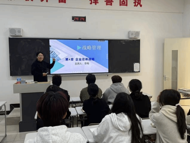 在授课过程中,李梅结合华为、比亚迪等国内知名企业的经典案例展开,指出发展型战略的概念、类型及应用场景。与此同时,李老师还将企业的发展思路联系到学生的人生发展观上,告诫学生要树立长远的发展目标,努力学习,不断提升自身的综合实力,成长为优秀的人。另外,在讲授到发展型战略的利弊分析时,李老师也特别强调凡事都有其两面性,在追求自我发展的同时切记不要盲目或过快扩张,这样可能会适得其反,不管是给企业还是个人都会带来不必要的损害。