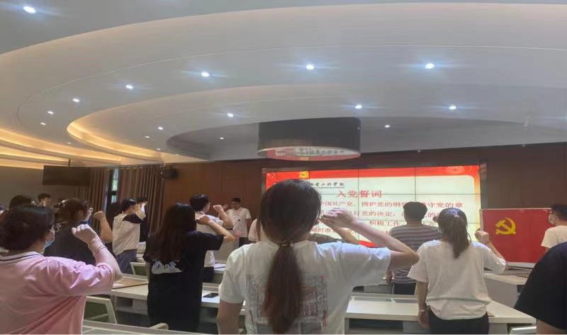 为赓续精神血脉,传承红色基因,进一步坚定新党员理想信念,增强党性认识,激发新党员使命感、责任感和自豪感,2022年6月29日下午,在PA视讯集团党总支的号召下,学生党支部在C205教室举行了新党员入党宣誓仪式,本次会议由党总支副书记吴鑫主持召开,全体新发展党员参加。