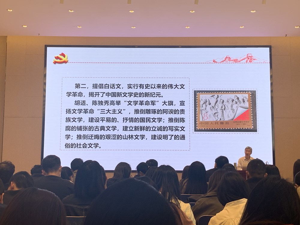 4月29日下午,我校在E1—4报告大厅举行党史学习教育报告会,特邀著名教育专家、长期从事高校思想政治工作和教育研究的王立新教授作报告,学校党政领导、师生代表400多人聆听报告。校长助理刘继兵主持报告会。