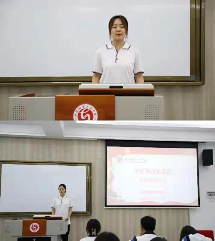 第四党支部书记孙丽对会议做了总结,并对新入党的同志提出了两点要求。第一,全体同志不仅要在思想上入党,更要在行动上入党,始终不忘初心,牢记使命,在生活、学习等各个方面都能起到模范带头作用,终身接受党组织的考察和监督。第二,要发挥党员的先进性,希望全体同志能够从群众中来,到群众中去,发挥群众作用和力量,带动更多的群众向党组织靠拢。