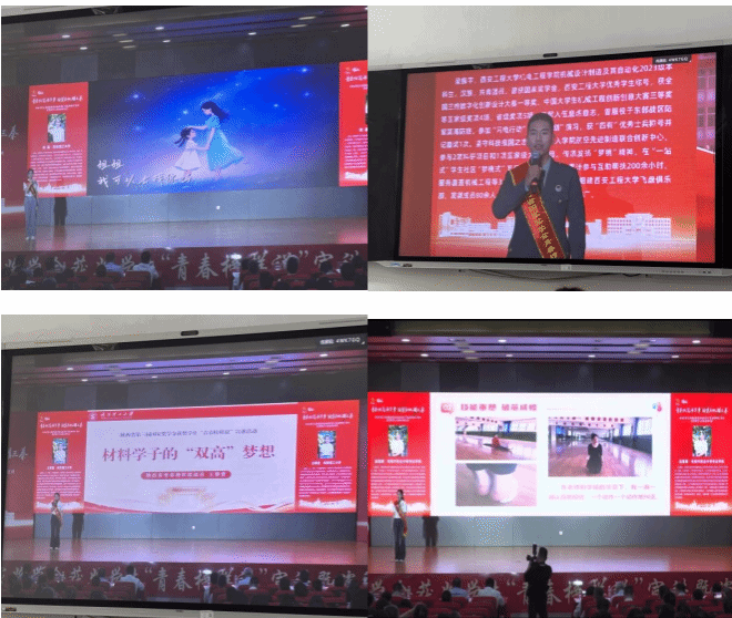 宣讲环节中,来自西安理工大学的耿晶以“满目星光,自在晶莹”为主题,分享了她的追光之旅,以科研匠心破解环保难题,以教育微光点亮童真梦想;西安工程大学梁振宇以“迷彩韶光,让青春热辣滚烫”为主题,讲述了自己两年的军旅生涯,要有咬定青山不放松的坚持,在新时代浪潮中振翅飞扬,让青春热辣滚烫;旬阳市职业中等专业学校赵煜蓉以“破茧成蝶舞青春”为主题,分享了她从职业赛道到世界舞台的蜕变历程;陕西理工大学王筹宣以“材料学子的双高梦想”为主题,分享了她从隐形眼镜到高分子化学的研究历程……11位“青春榜样团”成员从学术探索、科技创新、社会实践、志愿公益等维度,用鲜活的案例、真挚的情感,展现了新时代三秦青年“以笔为剑、以梦为帆”的奋斗姿态。