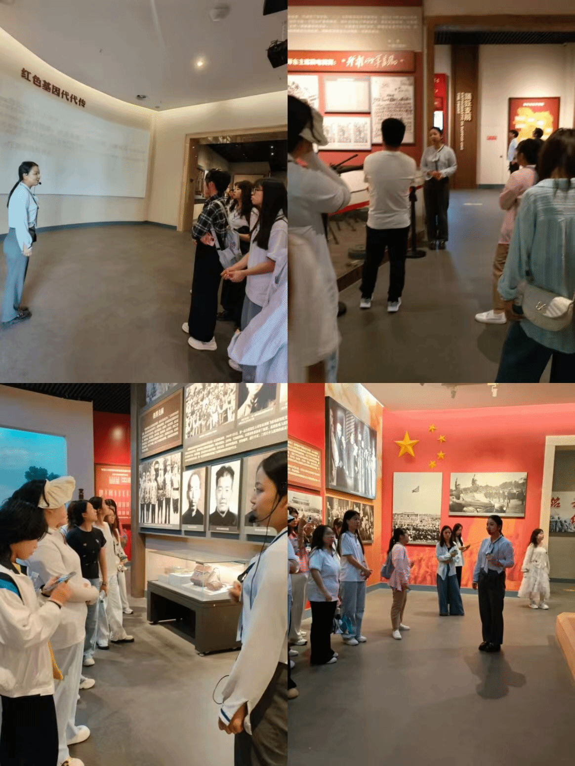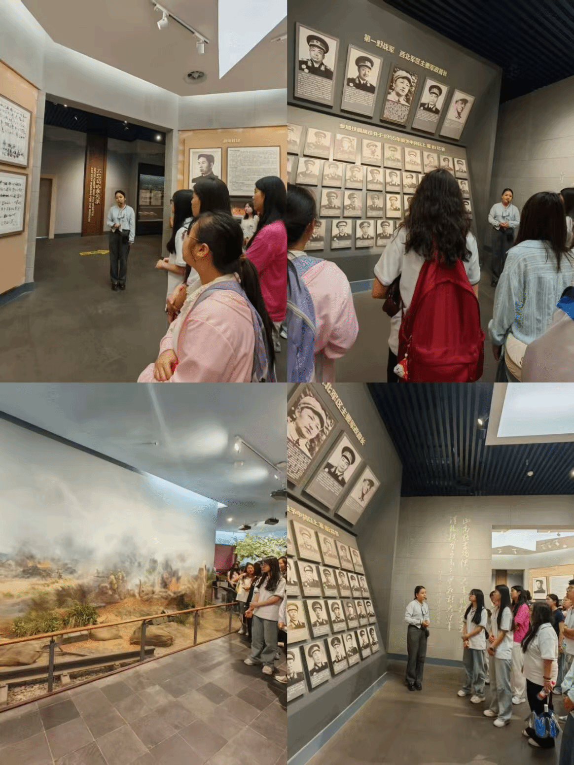 在布满文献与旧照的展区前,同学们屏息凝神,围听讲解,目光灼灼追寻着革命先辈的足迹。从运筹帷幄的战役部署,到前仆后继的血火冲锋,讲解员生动的叙述,让尘封的史料瞬间“活”了过来。大家或驻足沉思,或低声交流,于泛黄的纸页与影像间,触摸着滚烫的信仰力量。移步英烈名录墙前,密密麻麻的姓名与肖像,铸就了一座不朽的英雄丰碑。同学们肃然静立,凝视着先辈坚毅的面容,向那“为有牺牲多壮志”的浩然气魄深深致敬。