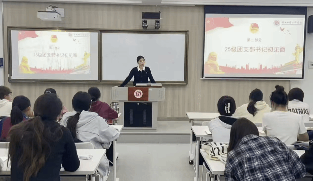 随后,会议进入第二部分:2025级团支书初见面。团支书们依次发言,围绕“我对团支书工作的理解”“团支书应具备的核心素养”以及“为什么竞聘团支书”。团支书成员纷纷表示要有责任心,树立模范带头作用。未来她们将提升政治理论水平和组织协调能力,切实发挥思想引领作用,服务同学成长。