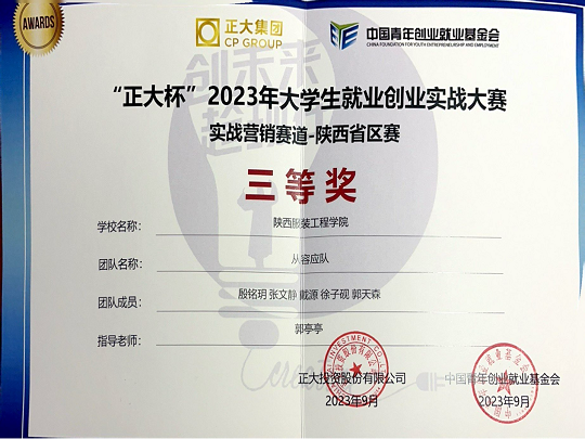 我们对获得三等奖的学子深感骄傲和自豪,并对他们未来的创业道路充满期待。他们的成功不仅是个人的胜利,更是我校培养高素质人才的生动写照。相信他们会以更加饱满的热情和勇往直前的姿态,继续在创业的路上闯出新的成就,为实现中国梦贡献自己的力量。