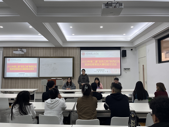 会计学2102班陈冲同学结合自身参加双百工程的经历,给我们分享了双百工程前、中、后期工作开展中的经验。在确定论题、寻找队友、咨询联系导师、团队讨论、达成共识、合作分工,撰写申报书等大家关心的问题中给了很多有用的建议。