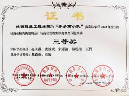 5.2023年获会计与商业管理案例竞赛全国三等奖。