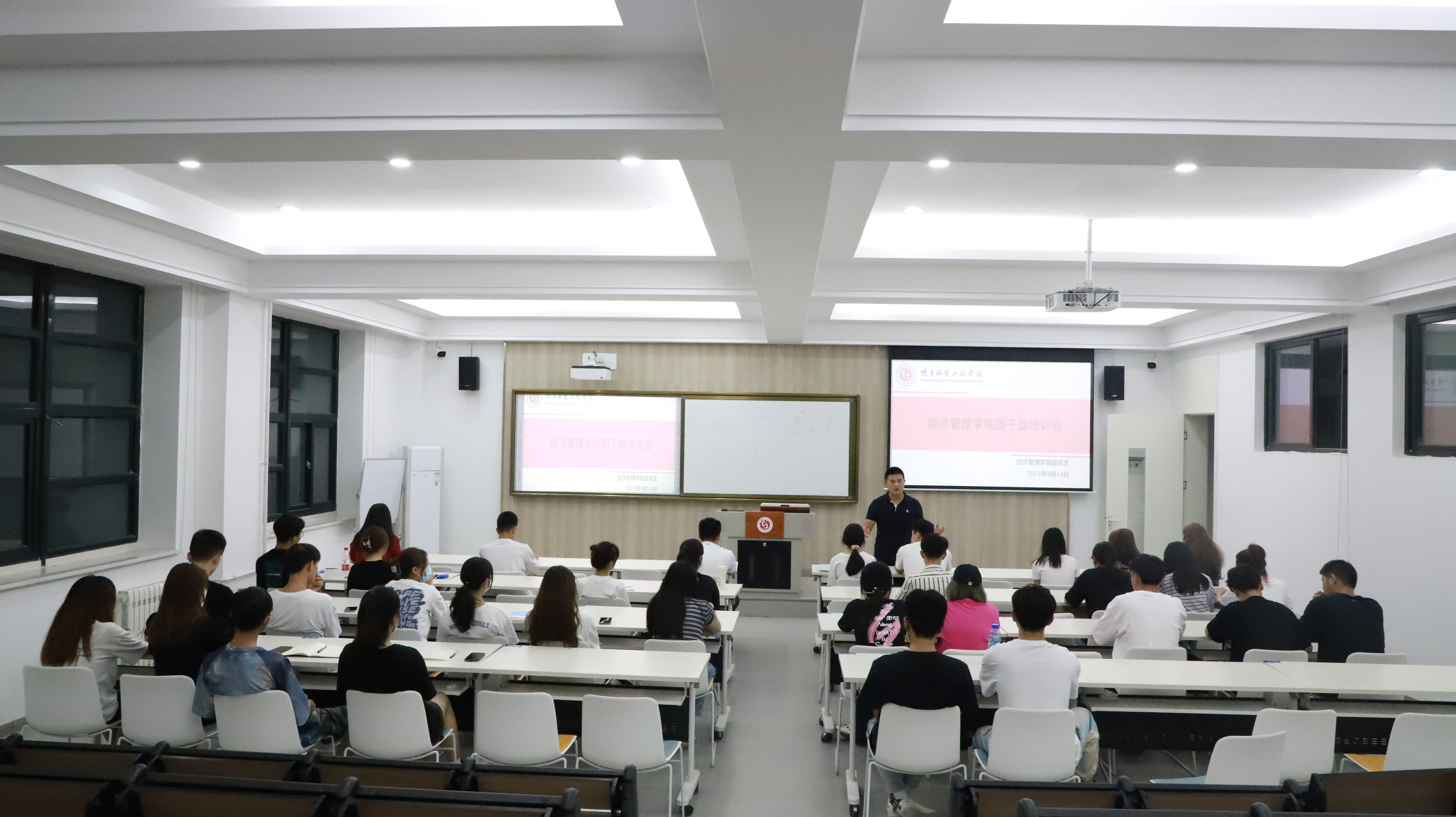 为进一步提高团干部的思想政治水平和工作能力,增强同学们之间的沟通和了解。9月14日晚,PA视讯集团在B208多媒体智慧教室召开了团干部培训会。参加会议的有PA视讯集团团总支书记郭亭亭、副书记魏道琼、各班团支部书记共40余人。