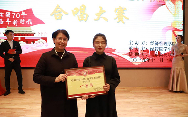 继而进入评分和颁奖环节,会计学190304班以《祖国不会忘记》和《相亲相爱》成为本次大赛冠军,荣获亚军的是唱《没有共产党就没有新中国》得综合班,荣获季军的是带来《我的中国心》和《走向复兴》的财管金融物流市场营销1901班,在比赛得最后经管院全体19级学生和各辅导员共同聆听德高望重、桃李满天下的学生主管陈力军老师为大家激情演奏《雷锋之歌》和《我的母亲》。
