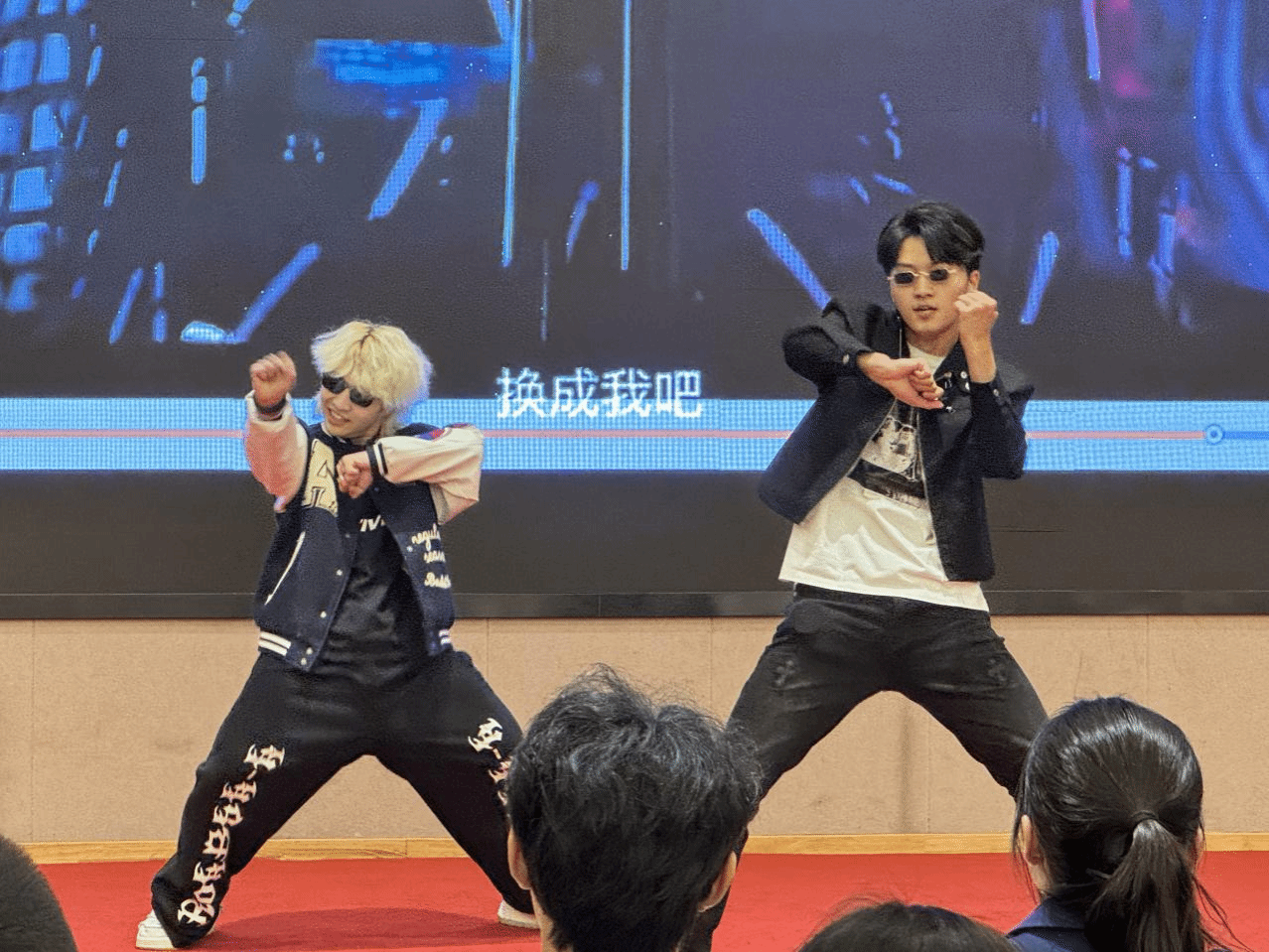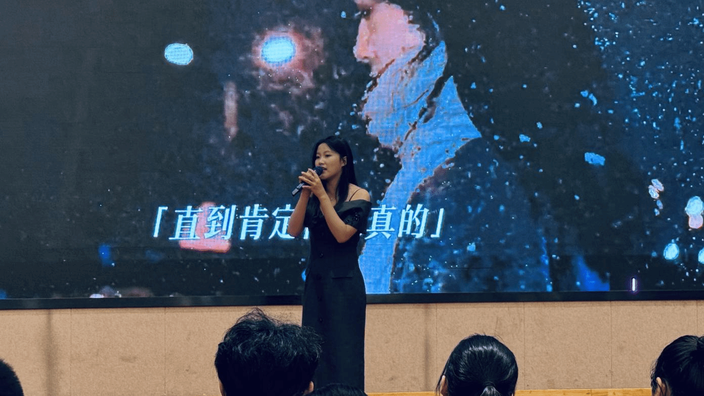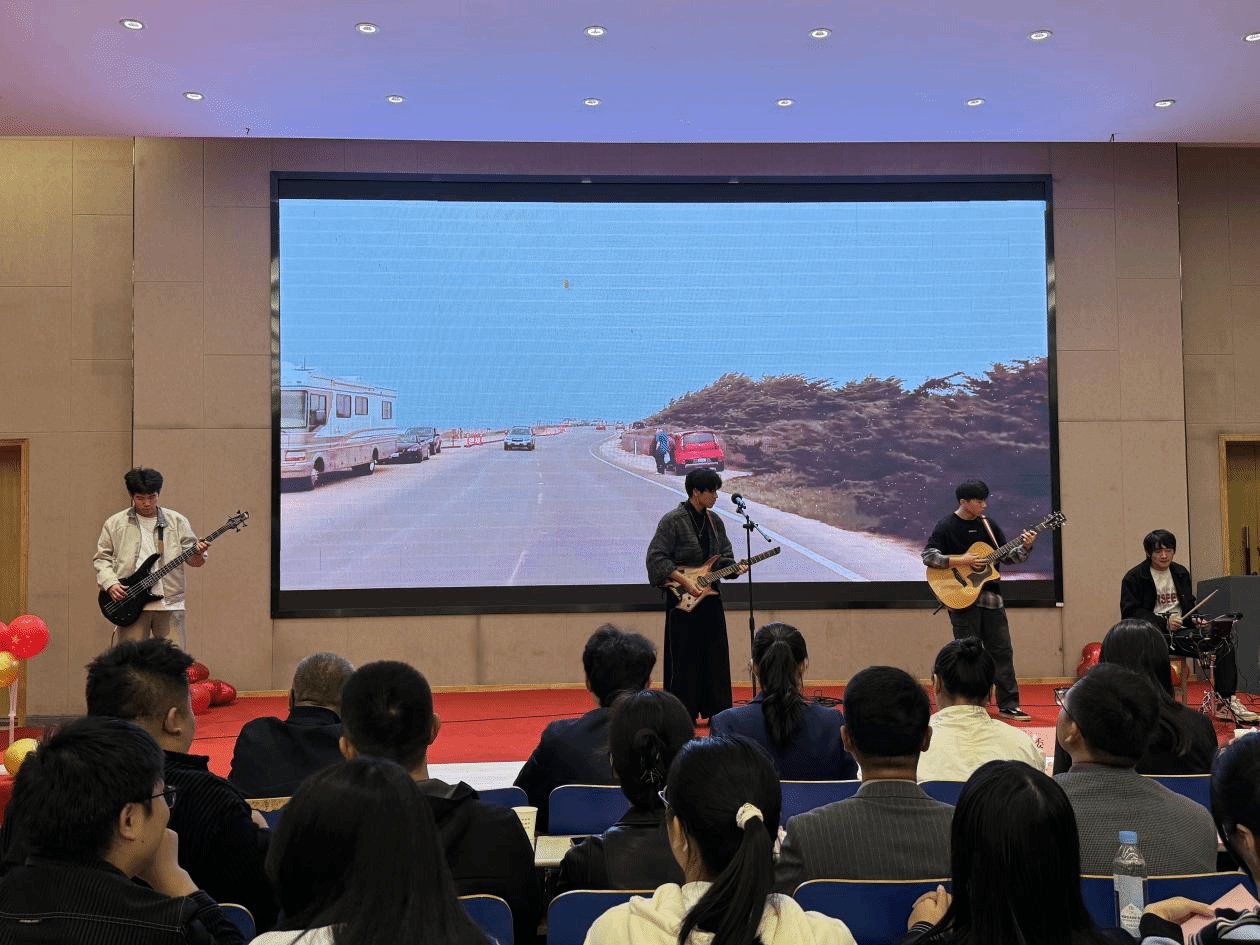比赛中场,文前丰、吕敏行带来双人舞表演,巧妙切换现场氛围,“听歌识曲”互动环节更让观众踊跃参与,举手抢答赢取礼品;抽奖环节则为现场学生送上惊喜,进一步点燃活动热度。演唱环节结束后,现场投票通道开启,学生扫码为喜爱的选手投出宝贵一票,最终结合各项分数确定获奖名单。为丰富赛事环节、深化跨校交流,陕西科技大学镐京学院学子卜曌琳登台献唱《如愿》注入温暖力量,展现跨校艺术交流风采。