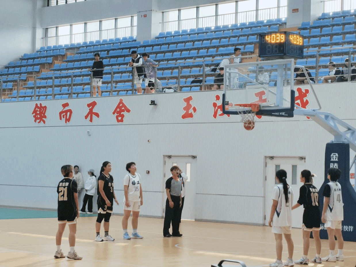决赛现场气氛紧张热烈,双方队员迅速进入状态。我院女篮队员们凭借默契的传球配合与精准的攻防转换率先打开局面,面对对手的猛烈反扑,她们沉着调整战术,以严密的防守化解危机,用犀利的反击撕开防线。队员们相互鼓劲、顶住压力,最终以微弱优势锁定胜局。当比分定格的瞬间,教练与场下观众的呐喊声此起彼伏,这一刻的荣光属于每一位为胜利拼搏的身影。