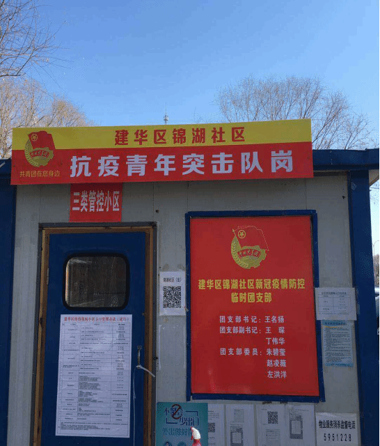 王名扬同学在北国的齐齐哈尔市建华区文化街道锦湖社区义务参加防控卡点值勤。作为锦湖社区的大学生志愿者、预备党员,他配合领导冲在抗疫第一线,不惧风雪严寒,不畏病毒感染,履职尽责,全力做好对小区路口出入的车辆、居民进行认真登记、耐心劝导、宣传排查等工作,做最美守护员。面对防控物资的短缺,他多方联系,为社区赠送护目镜16个、热帖100个、足贴100副。他牢记初心,践行宗旨,完美诠释了预备党员的初心和本色。他说:“我作为一名当代大学生,作为一名团干部,作为一名预备党员,深知在国家和人民需要的时候,应该义无反顾的冲锋在第一线。”