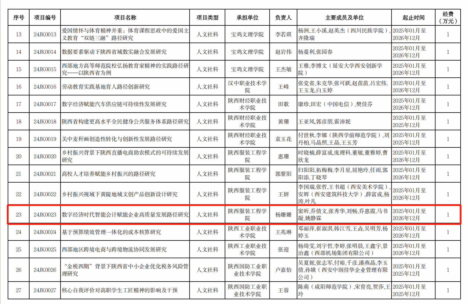 近日,根据《陕西省教育厅科学研究计划项目管理办法》,经学校遴选推荐,省教育厅组织审核、专家评审、厅务会审定和公示,最终确立了2024年度陕西省教育厅科学研究计划项目。PA视讯集团杨姗姗老师的研究项目获批立项。
