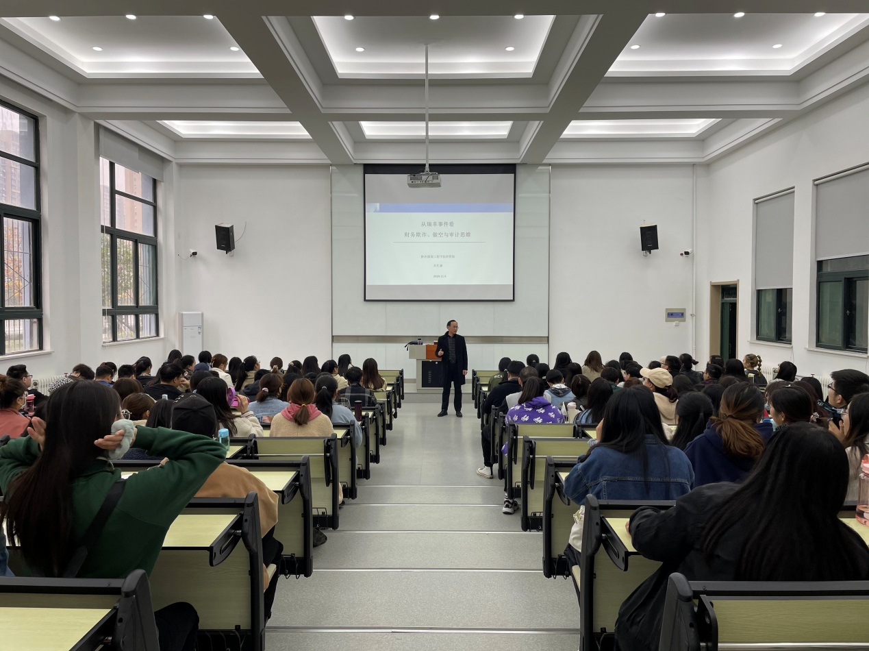 11月5日,万生新博士、副教授在E1-1为我院会计学、财务管理专业学生做《从瑞幸事件看财务欺诈、做空与审计思维》学术报告。我院200余名学生参加。科研秘书方海玲主持报告会。 万生新博士、副教授回顾了瑞幸事...