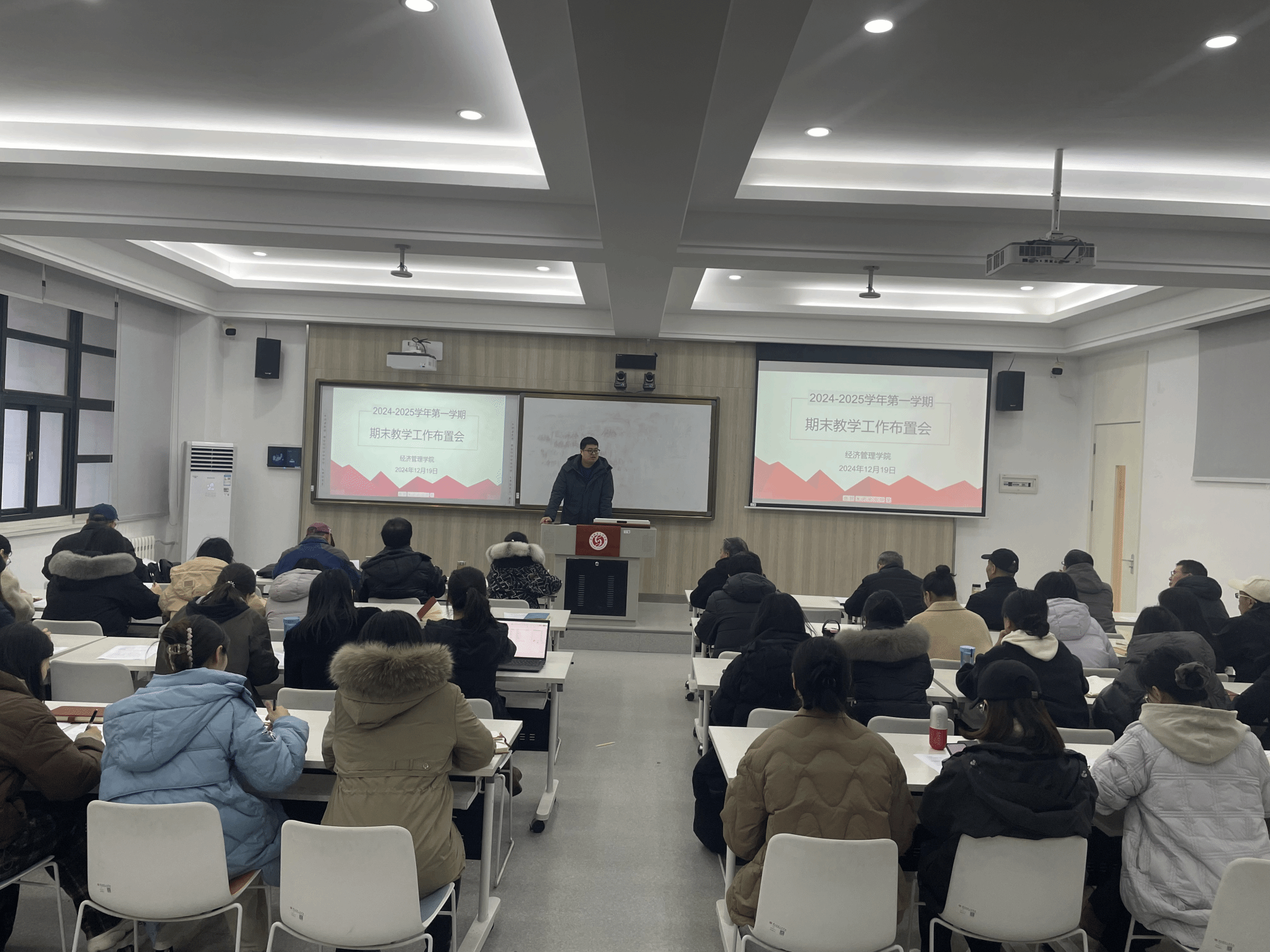 凝心聚力迎期末,细致部署促发展。为全面做好期末教学工作,明确学期末各项工作职责与目标,我院于12月19日下午在B209教室召开期末教学工作会议。副院长来燕、教学秘书吴鑫及全体教职工参加了此次会议。会议伊始,吴鑫宣读了陕服教函发【2024】188号《关于开展2024-2025学年第一学期期末教学检查的通知》,传达了学校期末教学工作安排,并对认知实习、毕业论文开题、毕业实习、教材征订、期末考试等工作进行了部署。来燕要求全体教师要以高度的责任心保障期末教学、...
