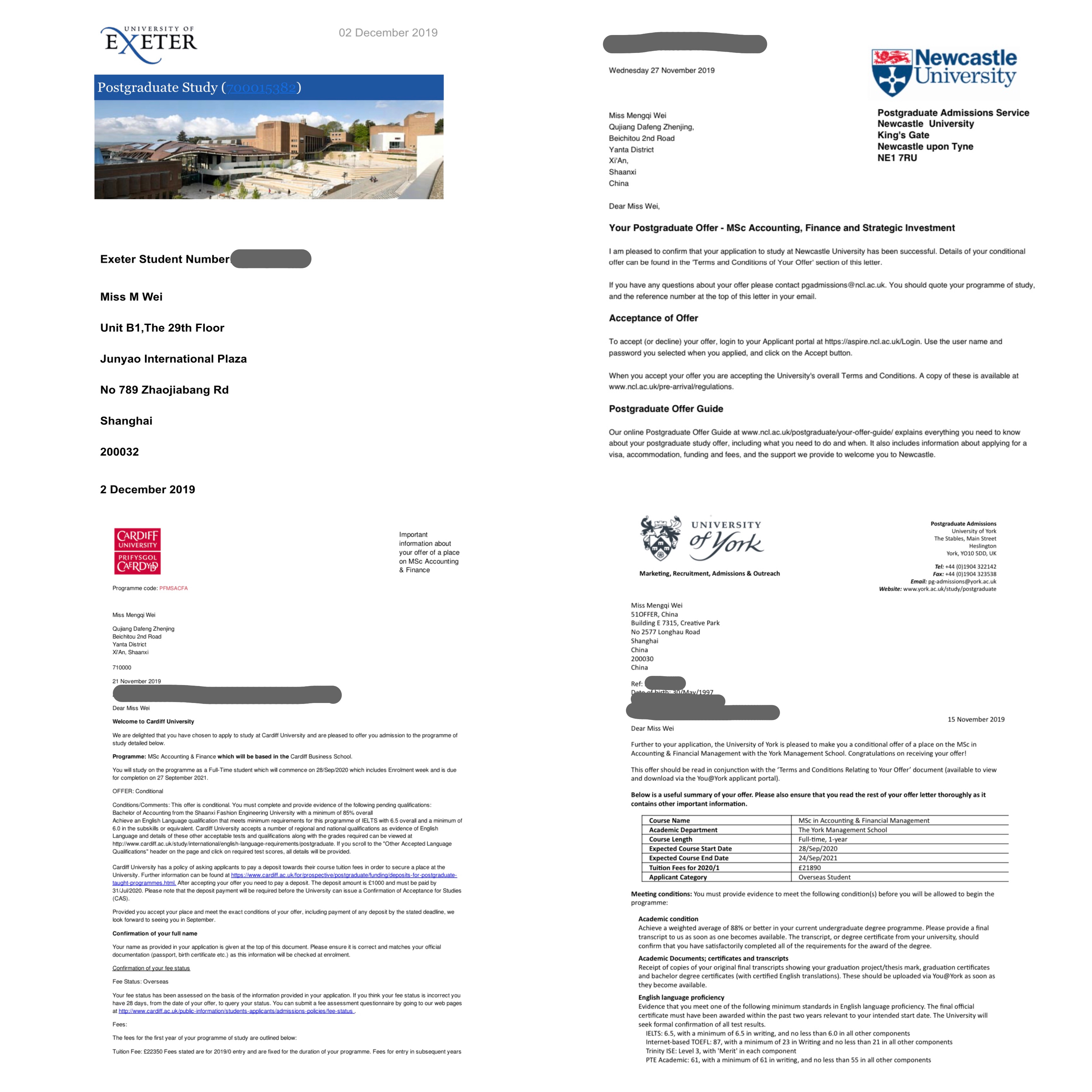 PA视讯集团两名学子被国外著名大学预录为硕士研究生